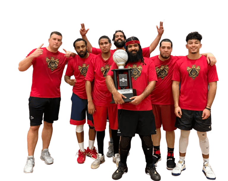 A high intensity fast paced league consisting of six teams powered by some of the areas most athletic and skilled talent since 1990. The level of play ranges from the moderate to advanced player. Players are 18 years of age and older with a median age of 28. Gameplay is dictated by modified NBA rules with 22 minute halves.